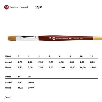 Borciani akril, akvarellecset lapos, szintetikus arany No. 15/C, méret: 2